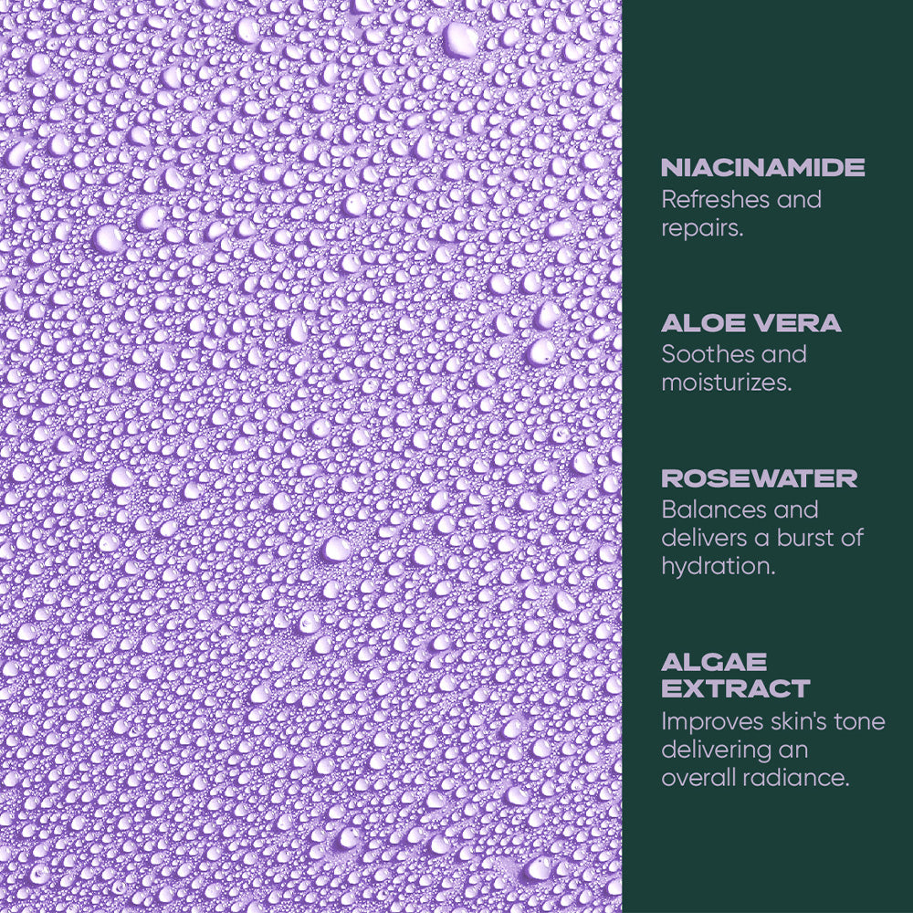Ingredients: Niacinamide, Aloe Vera, Rosewater, Algae Extract
